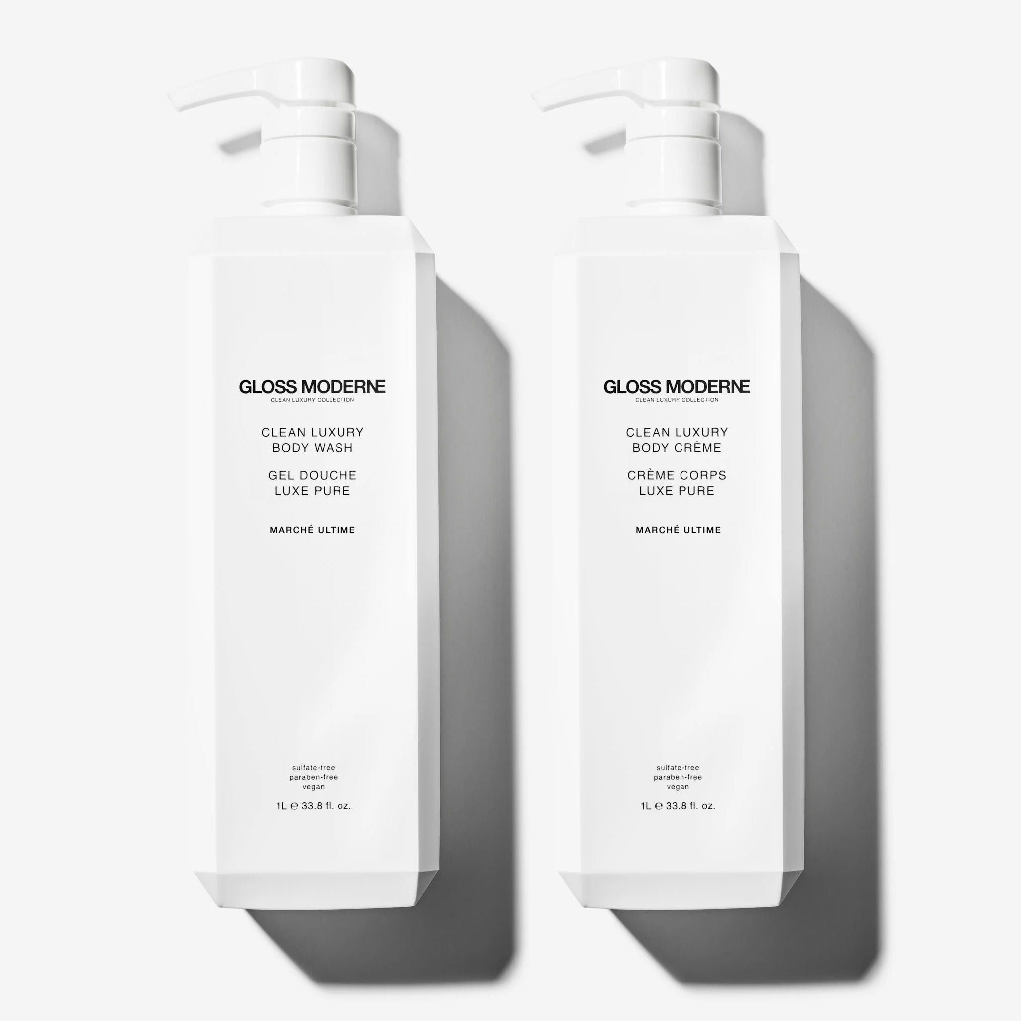 Clean Luxury Body Wash & Body Crème Duo - Marché Ultime (Deluxe Liter Sizes)